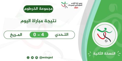 تواصلت فعاليات دوري كرة القدم للسيدات بملعب الاكاديمية بالخرطوم (2) بحضور قادة الاتحاد السوداني لكرة القدم ممثلا في المهندس الفاتح احمد باني – الاستاذ محمد حلفا- الاستاذ معتز محمد لطيف ( الشاعر) بجانب لجنة كرة القدم النسوية بالاتحاد؛ عبر دكتورة احلام بولاد- انشراح حسن- غادة مبارك – احمد عز الدين بجانب لفيف من الجمهور والإعلام.. هذا و التقى فريقا التحدي والمريخ وأسفر اللقاء عن فوز التحدي باربعة اهداف دون مقابل للمريخ أحرز الاهداف اللاعبة سواكن موسي صاحبة الرقم (15) في الدقيقة (9) من شوط المباراة الاول واضافت اللاعبة ريان رجب (10) الهدف الثاني في شوط المباراة الاول في الدقيقة (22) وفي شوط المباراة الثاني احرزت اللاعبة نضال فضل الله (7) الهدف الثالث في الدقيقة (13) بينما احرزت اللاعبة رانيا ابكر (11) الهدف الرابع في الدقيقة (35)..