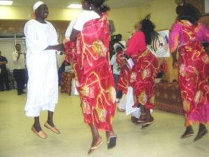 أما الحكامات فيدقون أثناء الغناء علي القرع الفارق التي توضع علي إناء عليه ماء فتصدر أصواتاً طربيه.أما العروس والعريس فيرتدون الزي الرسمي، وتبدأ مراسم الإحتفال قبل تلاتة أيام ب”حنة العريس”