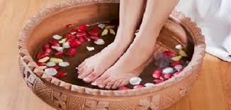 ●ﻧﻘﻊ ﺍﻟﻘﺪﻣﻴﻦ ﻓﻲ ﻣﺎﺀ ﺩﺍﻓﺊ ﻳﺤﺘﻮﻱ ﻋﻠﻰ ﺍﻟﻤﻠﺢ.