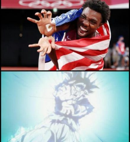 _رياضيين أولمبيين يحتفلون علي طريقة أبطال الأنمي.