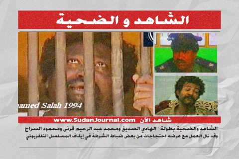الشاهد والضحية بطولة ” الهادي الصديق ومحمد عبد الرحيم قرنى ويحيى فضل الله وعوض صديق والرشيد أحمد عيسى وسهير الرشيد ونادية أحمد بابكر ومحمود السراج ومن إخراج شيخ المخرجين فاروق سليمان . وقد نال العمل مع عرضه احتجاجات من بعض ضباط الشرطة في إيقاف المسلسل التلفزيوني . فقد كشف العمل تورط كبار ضباط الشرطة ووجه اتهامات مثيرة جدا مع تناول الصحف اليومية آنذاك الاتهامات للشرطة وانتقادها في البطئ المخيف لعمل الشرطة في كشف الحقيقة.
