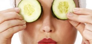 تقطع البطاطس والخيار شرائح دائرية وتوضع وهي باردة على العين من ١٥ ال ٢٥ دقيقة مع الاسترخاء .