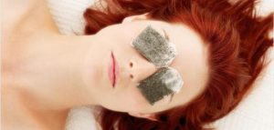 بعد الإستمتاع بكوب الشاي ،خذي كيس الشاي ( tea bag ) بعد أن يبرد،ثم ضعيه على عينيكِ .