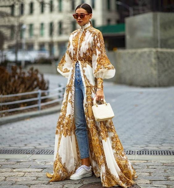 • أما الكيمونو الطويل مع الفساتين فدائماً ما يتميز بمظهر قوي، يجمع بين الأنوثة والأناقة.