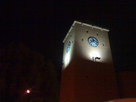 في الصفحة الشرقية لمبنى البلدية تقوم منارة من الطوب الأحمر تعانق السماء، وفي أعلاها وضعت ساعة شهيرة ظلت لعقود معلماً من معالم أمدرمان، عرفت عند أهلها بساعة البلدية، وكانت حتى عقود تطلق دقات مسموعة عند رأس كل ساعة، لكنها توقفت عن العمل الآن، وقد بذلت جهود من سكان المدينة لترميمها لكنها لم تفلح.