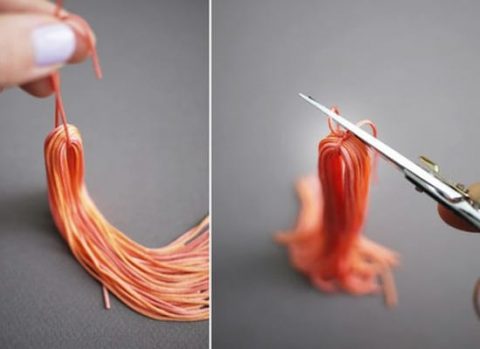 4 _للحصول على الشكل النهائي للقرط قومي بقص أطراف الخيوط لتكون متساوية .