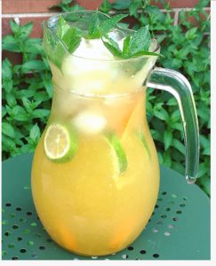 – يتم صب كميات متساوية من العصير وماء بارد في أكواب