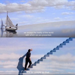 بمعنى أننا نتقبل الظروف المحيطة بيقين أنه لا يمكننا بالفعل أن نغيرها، بل لا نغيرها، و في الحقيقة جميع رسائل الفيلم تتلخص في أخرها حول هذه العبارة…