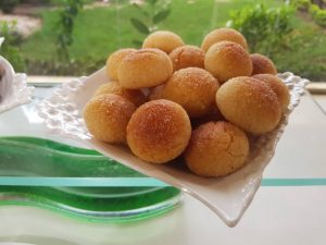 تخلط كل المكونات مع بعض وتعجن جيداً تكور وتوضع في صحن سامولينا.