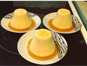 – نفرغ أكياس السكر المرفقة بالكريم كراميل في أوعية تقديم الكريم كراميل عدد الأواني يكون حسب الرغبة.
