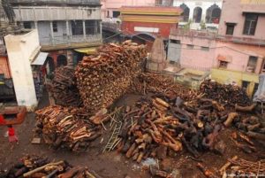 يوجد بالمدينة منطقتين لحرق الجثث حيث يتم حرق مئات الجثث يومياً وتستمر عملية الحرق الواحدة 4 ساعات بعدها يتم رمي الرماد في نهر الغانج، هذه العملية مكلفة جداً حيث يتطلب حرق شخص واحد 400 كيلوجرام من الخشب أي ما يعادل من 5 – 20 الف روبية ( 70- 300 دولار) حسب نوعية الخشب