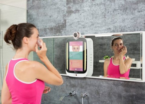 هي مرآة عادية و لكن تعرض لك اليوم و التاريخ و حال الطقس و رأيها في لون ملابسك و صورتك بالملابس قبل شرائها و تسريحة الشعر و لونه المناسب لك و مواقع التواصل و كل شي أي شاشة بطول خزانة الملابس و التحكم في أجهزة البيت الذكية الأخري عدا التسجيل و الاوامر الصوتية أو التحدث .
