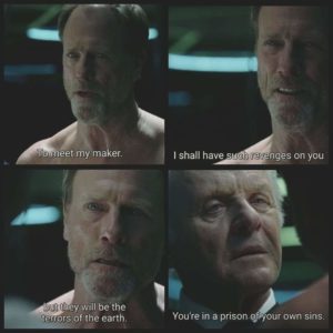 – تخيل أنك تعيش في عالم كل شيء مباح لك فيه دون عواقب تعذب وتقتل من تشاء ، تلهو وتغتصب ما طاب لك من النساء، الإنسان بطبيعته يعرف مسبقاً من يكون ولكن إذا إمتلك النفوذ والسلطة ستتفاجأ بلمحة بسيطة عما بوسعه أن يصبح عليه. ستجده يستخرج أسوء الصفات فيه والتي لم تكن فيه، أشدها قبحاً لا يكترث إلا لتحقيق مطامعه الشخصية غير آبه لما يسببه من أذى جسيم على غيره حاله حال رموز نظامنا البائد .