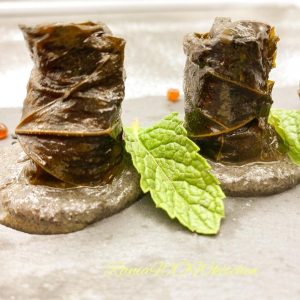 – خلط مكونات الحشوة مع بعضها البعض، وإحضار ورق العنب للفه.